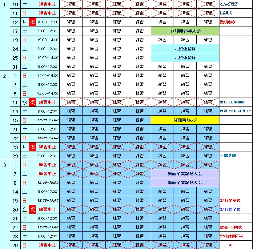 練習日 2/14(土)・15(日)・21(土)・22(日)・28(土)・